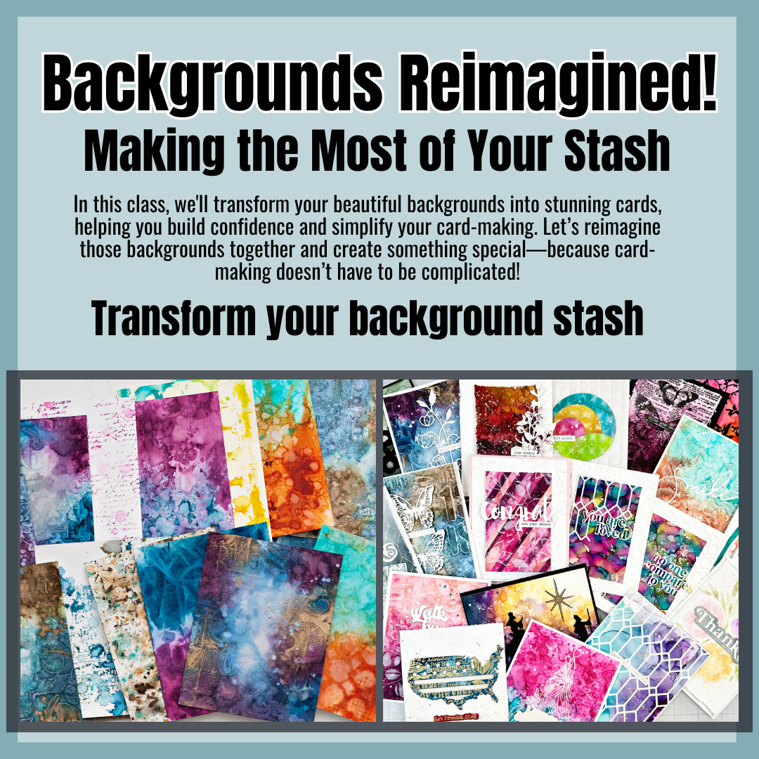 In the live class, you'll discover multiple techniques for transforming backgrounds into cards. However, with the VIP pass, you'll gain access to over 25 additional classes to expand your skills even further! (Note: the cards shown are examples of techniques, not the exact projects you'll create in class.)