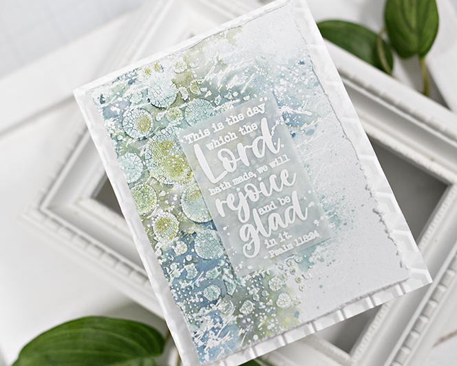 This card combines crackle paste and embossing glaze to build texture and depth. The richly layered background enhances a simple, grounded focal point.